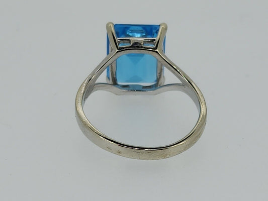14Kt. White Gold Fashion Ring with 9mm x 11mm Created Blue Topaz - 3.4 Grams