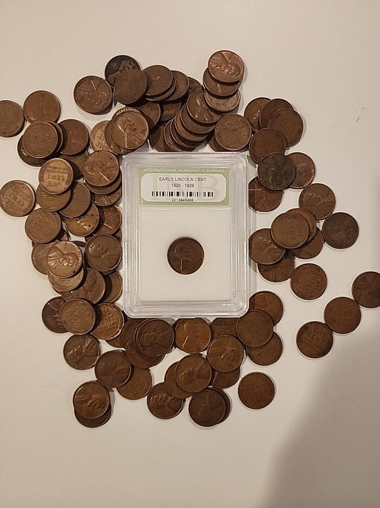 Lot of 100 Lincoln Wheat Pennies, Plus a Slabbed Early Cent 1920-1929 - ESTATE