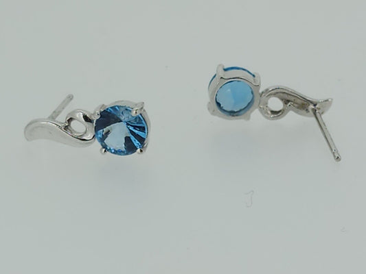 14Kt. White Gold Blue Topaz Earrings - Fancy Cut 6.1mm - 1.8 Grams