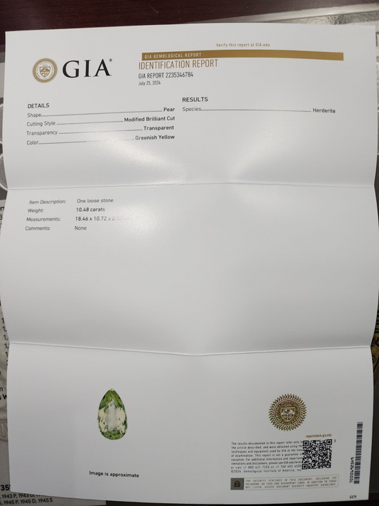 10.48 Ct Pear Shaped Herderite, GIA Report, Ultra Rare, Greenish Yellow, Wow